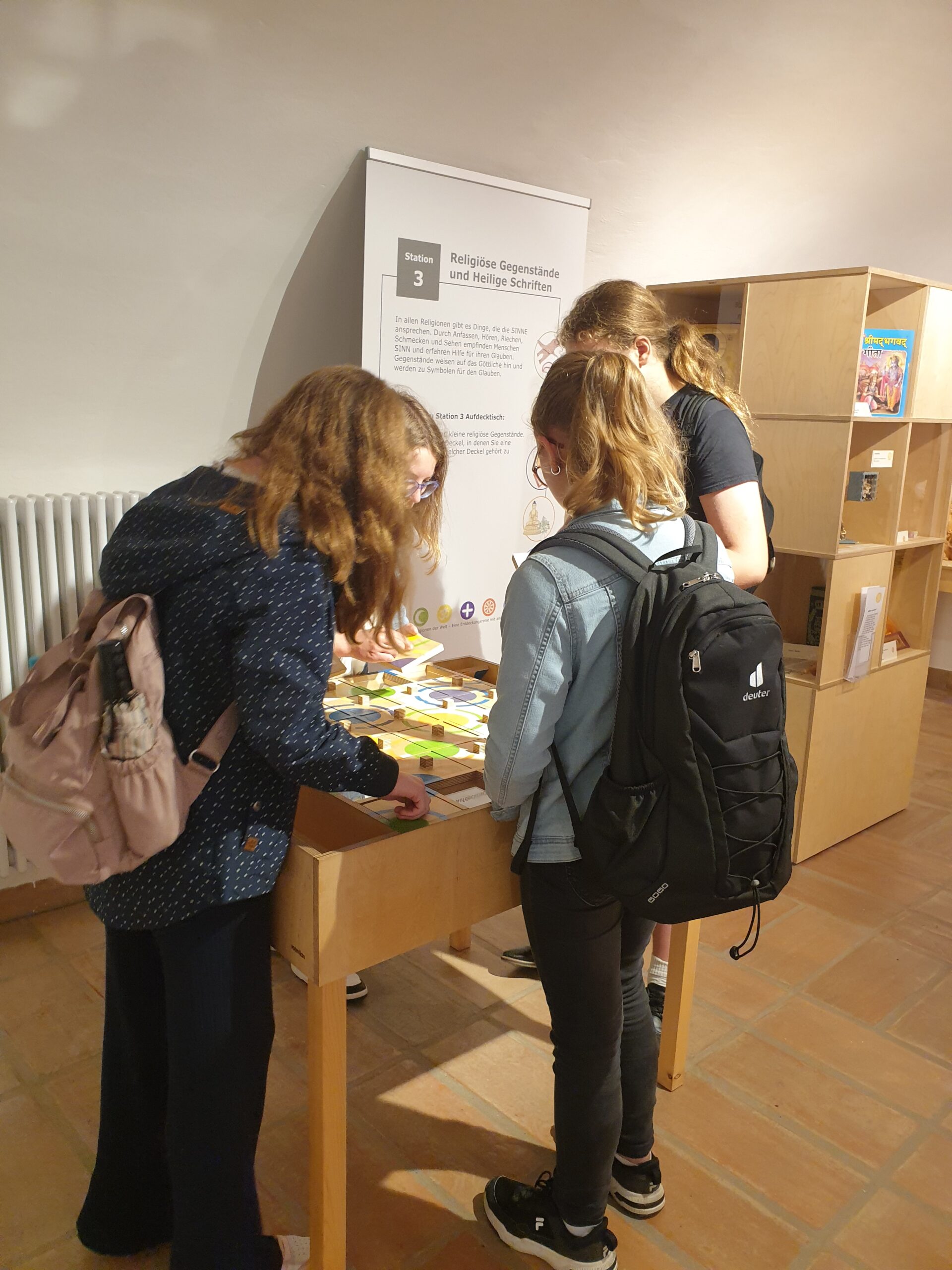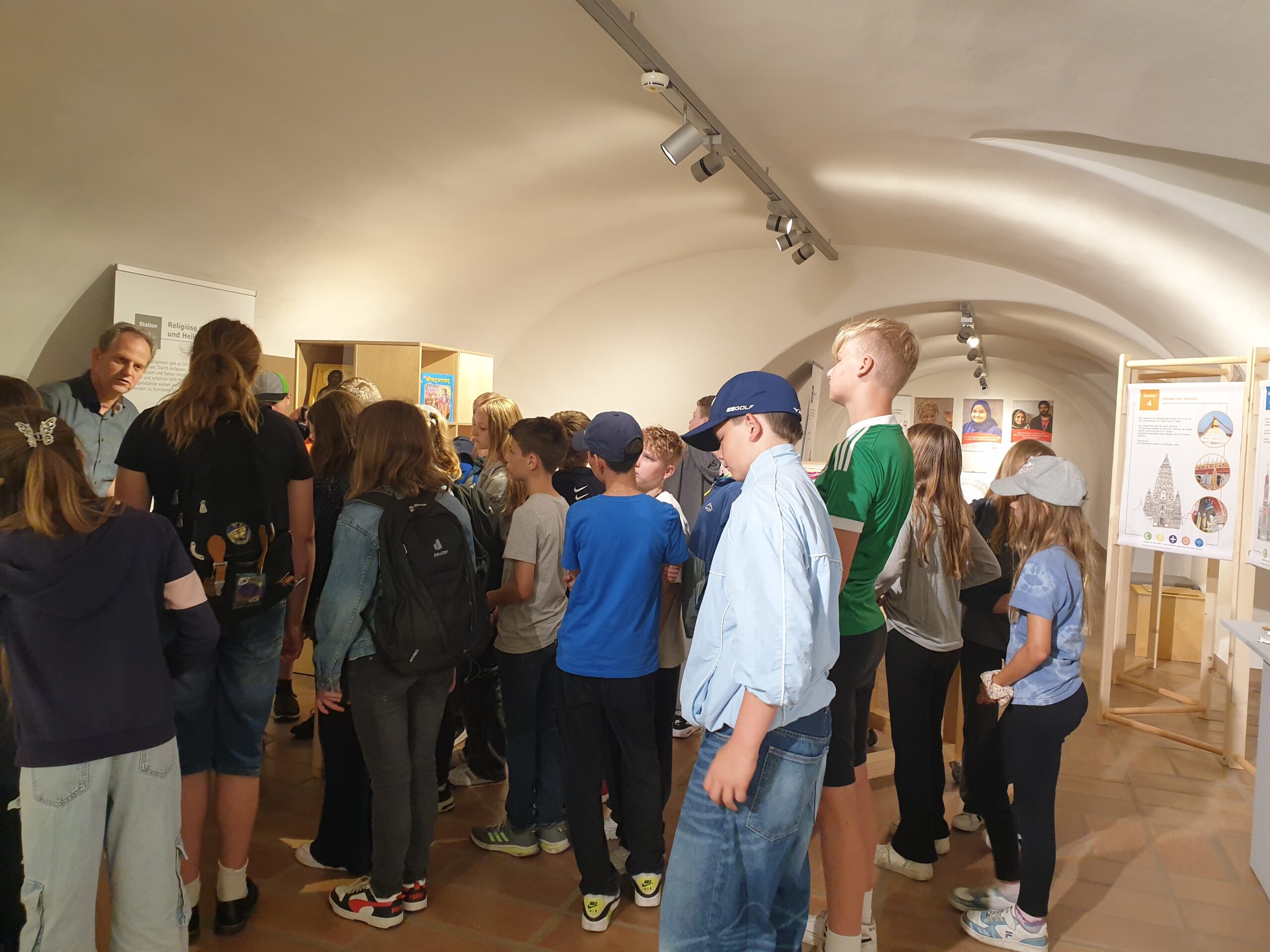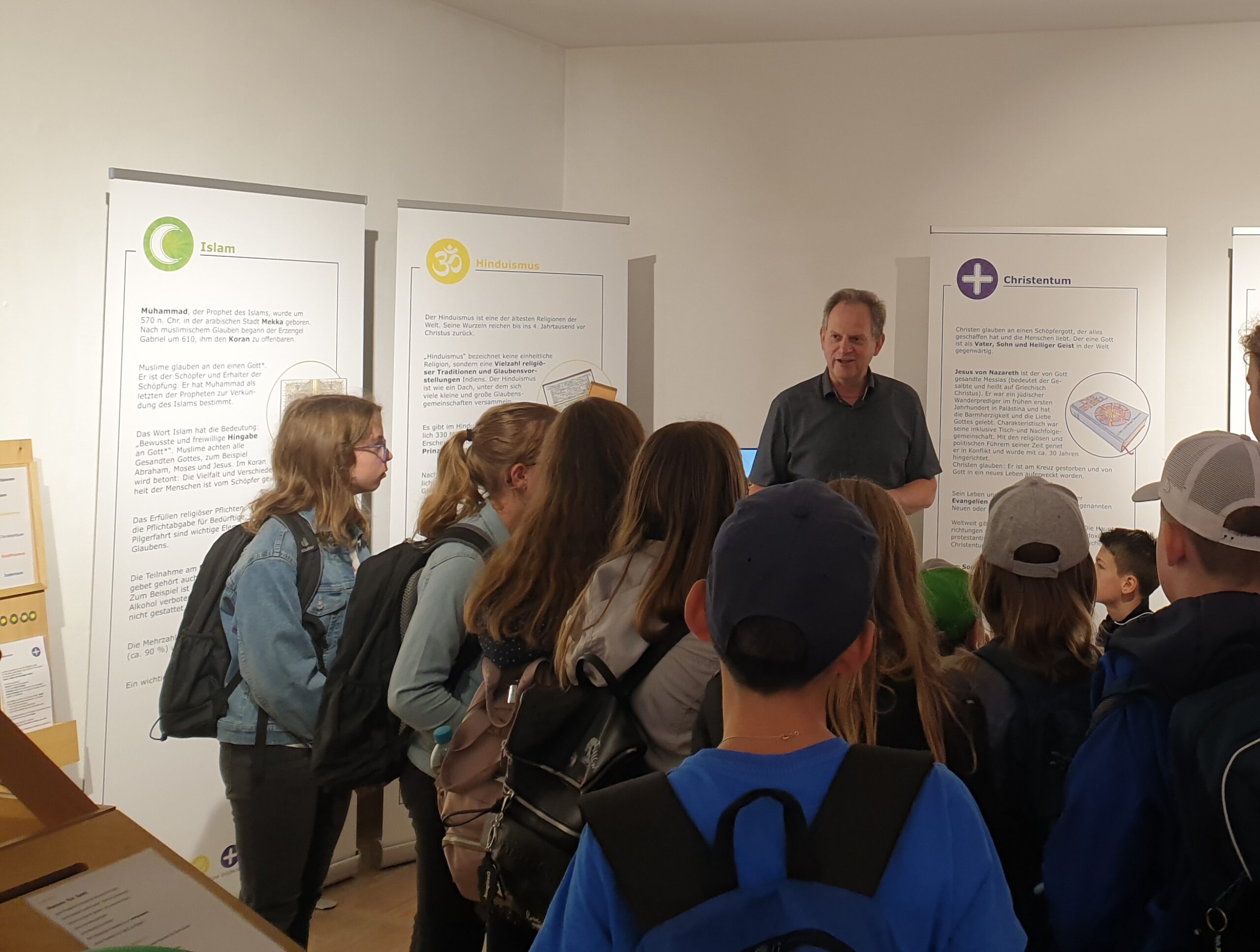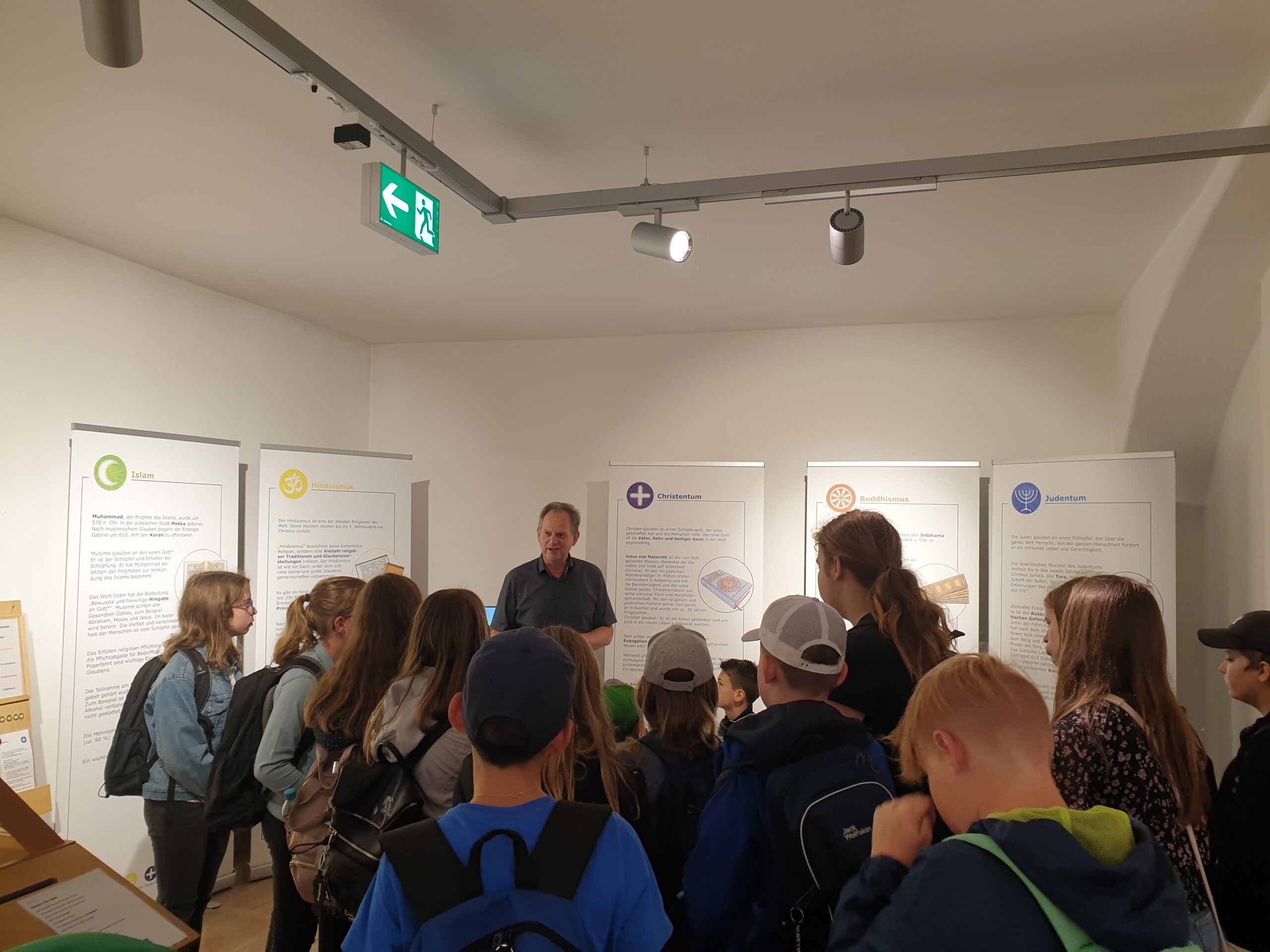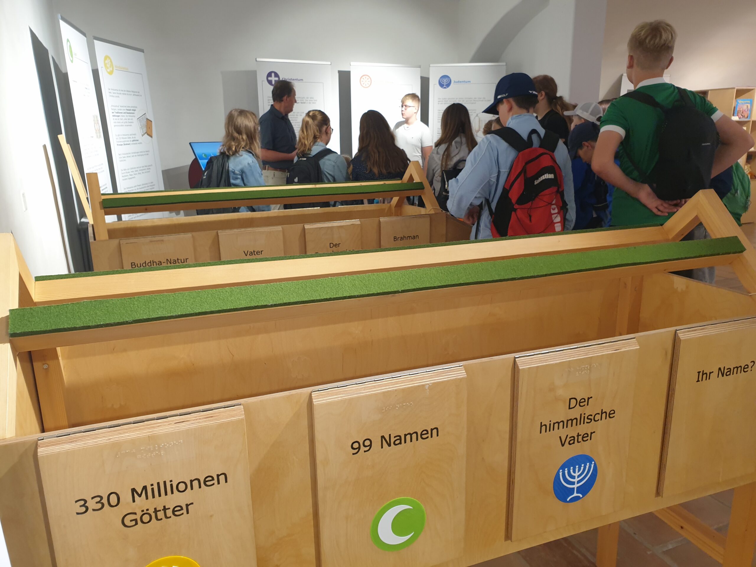 Religionsfreiheit und religiöse Toleranz sind gerade in der heutigen Zeit ein wichtiges Thema. Die sechsten und siebten Klassen durften hierzu die interessante Mitmachausstellung “Religionen der Welt” im Gäubodenmuseum besuchen. Hier erfuhren sie viele Details über die fünf großen Weltreligionen. So sehr sich auch die einzelnen Religionen unterscheiden, gleich ist bei allen ein Wunsch: Friede! Die Schüler konnten sich beim Rundgang durch die Ausstellung z. B. durch Puzzles und Quizfragen damit auseinandersetzen; auf diese Weise soll ein weltoffenes Religionsverständnis gefördert werden.