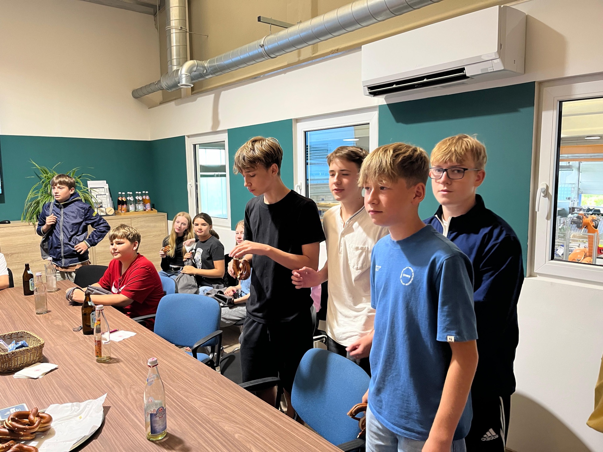 Im Rahmen unserer schulischen Berufsorientierung machte sich die Klasse 7a zu Fuß mit ihrem Klassenleiter, Herrn Echinger und Frau Blüml auf den Weg zur Firma RK-TEC, die direkt in Aiterhofen angesiedelt ist. Der Spaziergang diente nicht nur der Bewegung an der frischen Luft, sondern auch als Einstieg in einen erlebnisreichen und informativen Vormittag. Bei RK-TEC angekommen, wurden wir freundlich von Herrn Bauer empfangen, der uns zunächst mit einer anschaulichen Präsentation die Firma vorstellte. Dabei erfuhren wir viel über die Geschichte des Unternehmens, die angebotenen Produkte und Dienstleistungen sowie die verschiedenen Ausbildungsberufe, die dort erlernt werden können. Im Anschluss durften wir bei einem Rundgang durch die Firma einen genaueren Einblick hinter die Kulissen werfen. Besonders beeindruckend war es, die modernen Maschinen und Arbeitsabläufe aus nächster Nähe zu sehen. Ein Highlight war sicherlich der Schweißsimulator, an dem wir selbst ausprobieren konnten, wie anspruchsvoll und präzise das Schweißen ist – ganz ohne Funkenflug, aber mit realitätsnaher Technik. Den Abschluss bildete eine gemeinsame Brotzeit, bei der sich alle stärken konnten. In lockerer Atmosphäre fand zudem eine Fragerunde statt, in der wir viele offene Fragen zu den Berufen, dem Arbeitsalltag und den Ausbildungsmöglichkeiten bei RK-TEC stellen konnten. Wir bedanken uns herzlich bei Herrn Bauer und dem gesamten Team von RK-TEC für den freundlichen Empfang und den informativen Einblick – ein Besuch, der uns allen noch lange in Erinnerung bleiben wird.