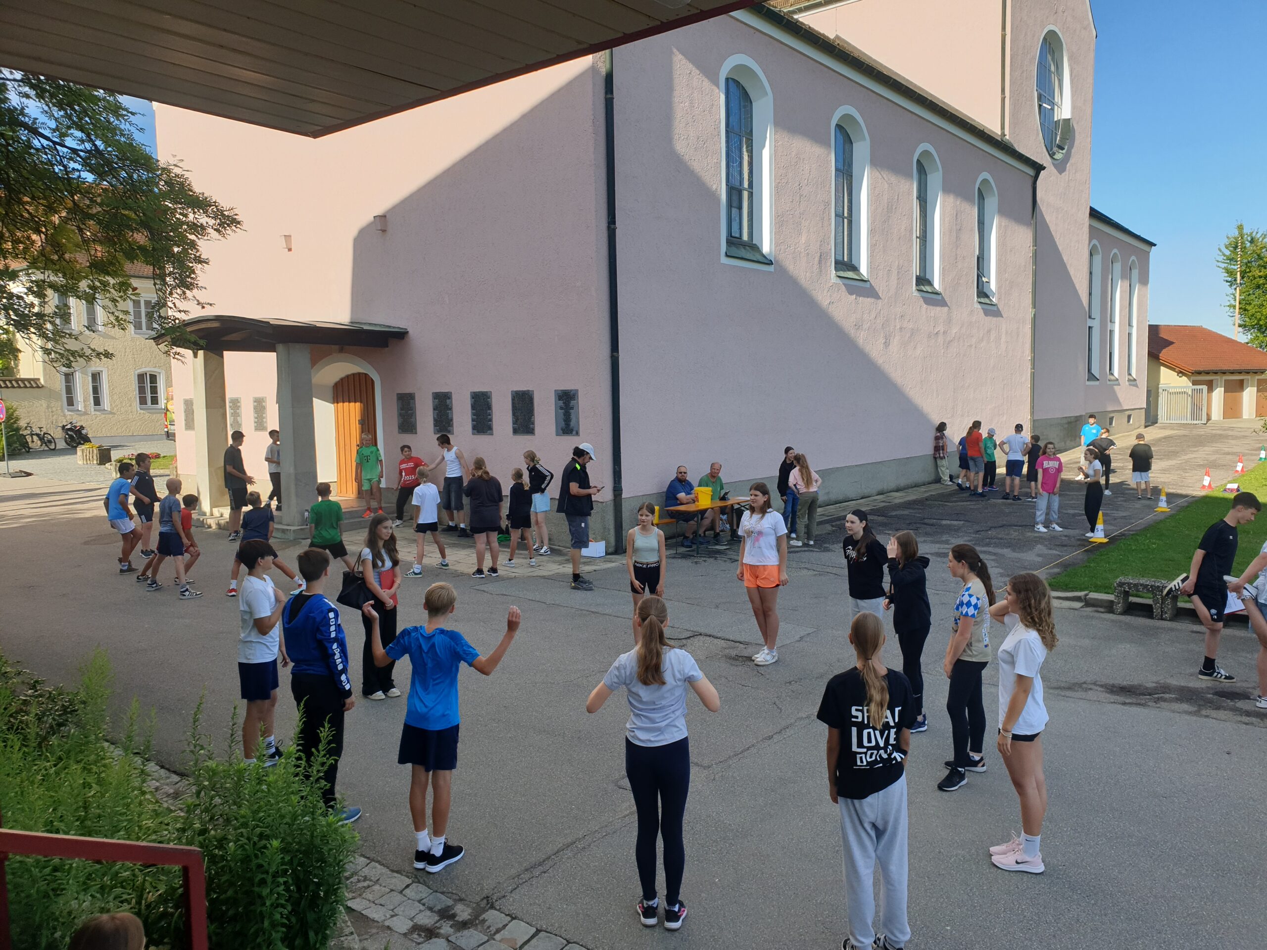 In der vorletzten Woche des Schuljahres fanden die Bundesjugendspiele an der Realschule in Aiterhofen statt. Trotz der unsicheren Witterungsverhältnisse konnten die Spiele ohne Gefahr durchgeführt werden. Die Schülerinnen und Schüler der fünften bis siebten Klassen durften ihr Leistungsvermögen an den Disziplinen Weitwurf, Weitsprung und Sprint zeigen. Eine großartige Arbeit leisteten dabei die neunten Klassen, die als Riegenführer, Auf- und Abbauhelfer sowie beim Messen tatkräftig unterstützten. Kulinarisch wurde das Ganze durch eine gesunde Pause mit frischem Obst abgerundet. Alles in allem ein gelungener, sportlicher Tag mit zufriedenen Gesichtern und ohne Verletzungen.